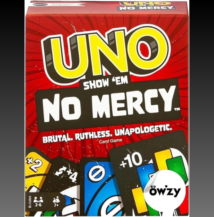 Bring next-level excitement to your game nights with UNO Show ’Em No Mercy, the most intense and competitive version of UNO ever! Designed by Mattel, this edition adds new twists, savage action cards, and unexpected challenges that push players to their limits. Perfect for kids, adults, family gatherings, and party nights, this game guarantees laughter, suspense, and unforgettable moments. If you love the classic UNO, get ready — this version shows NO MERCY!