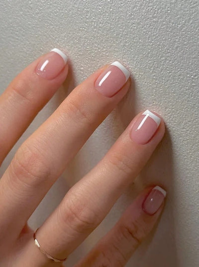 24x Short Square False Nails French Manicure Fake Tips Press On Full Cover Nails