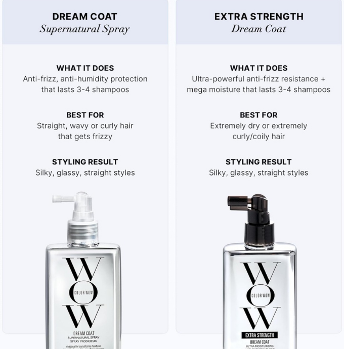 Color Wow Dream Coat Supernatural Spray (200ml) delivers powerful anti-frizz protection for up to 72 hours. Activated by heat, it creates a lightweight, humidity-proof shield that leaves your hair smooth, shiny, and silky without weighing it down.