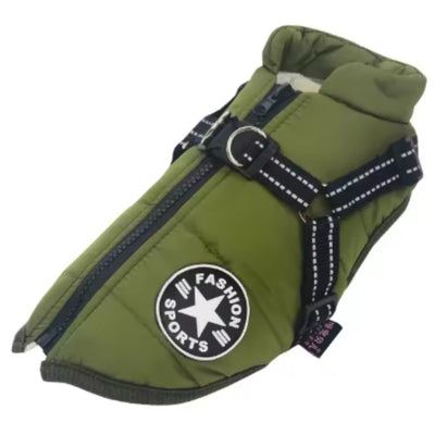 Dog Coat Waterproof With Harness Jacket Raincoat Winter Zip Coats Pet Hole Warm