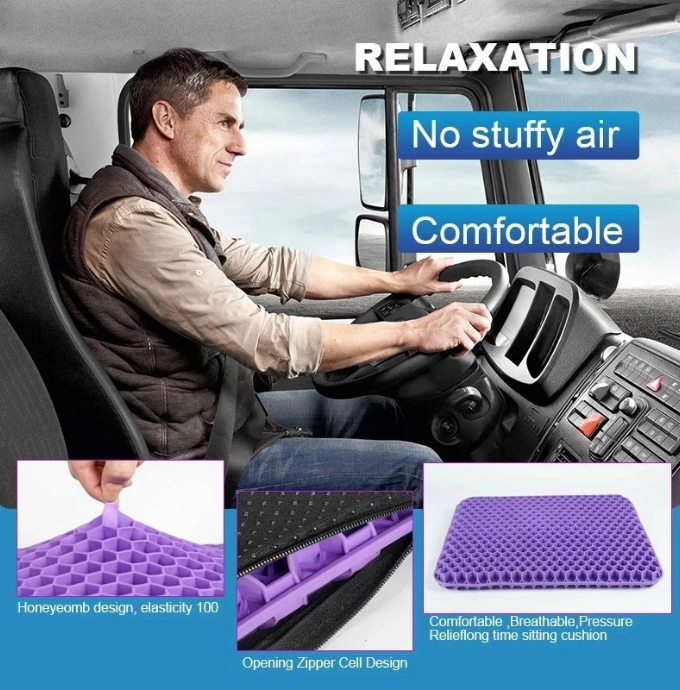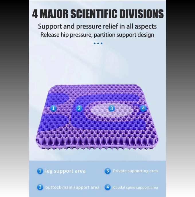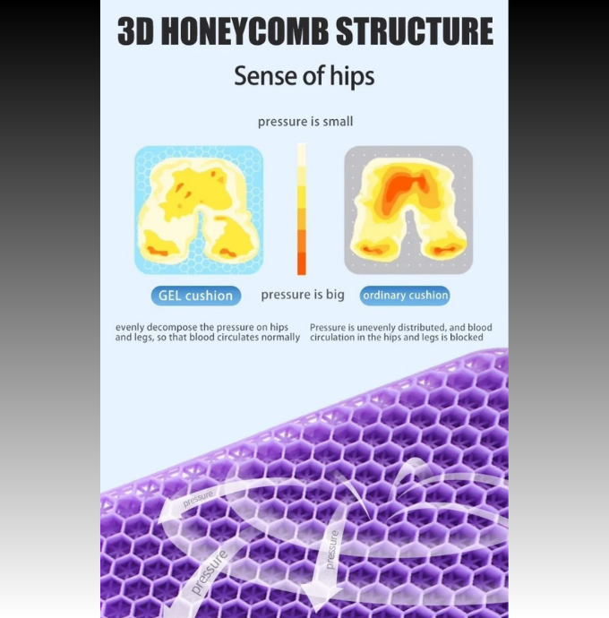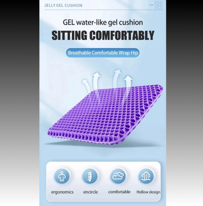 Experience all-day comfort with this Honeycomb Breathable Gel Seat Cushion designed to reduce pressure, keep you cool, and support long sitting hours. Its double-thick gel structure absorbs body weight evenly, preventing pain in the back, hips, and tailbone. Perfect for office chairs, car seats, wheelchairs, and home use.