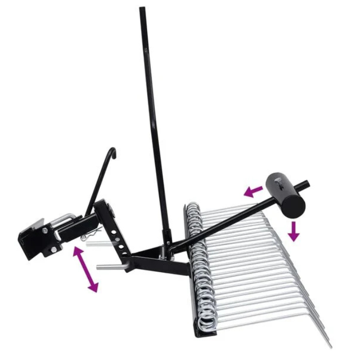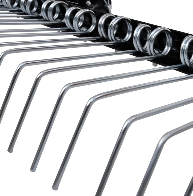 - Fast and effective scarifying: With the 14 twin durable spring tines and a wide 109cm scarifying width, the lawn scarifier offers a quick and effective way to scarify your lawn. The spring tines are heat-treated for extra strength, ensuring they can handle tough jobs.