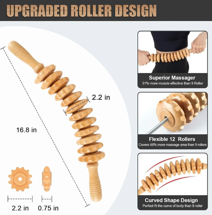 Experience natural relaxation and body shaping with this Wooden Massage Roller, designed to improve blood circulation, reduce cellulite, and support lymphatic drainage. Its ergonomic shape makes it easy to use on legs, arms, thighs, back, and waist. Perfect for daily self-care, this wooden massager helps relieve tension, break down fat deposits, and promote a smoother, toned skin appearance. Safe, durable, and eco-friendly — a must-have tool for home wellness and body sculpting routines.